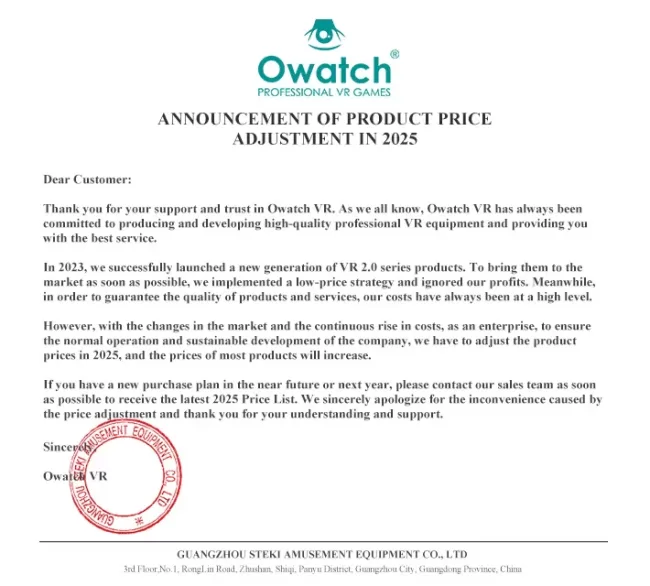 All Items 15% OFF2025/02/15 18:00:00 To celebrate the Spring Festival, we are offering a limited-time 15% discount on all commercial virtual reality equipment.From January 15th to February 15th, Everyone who purchase our products can enjoy offer. At the same time, we have also prepared a variety of popular virtual reality amusement equipment for you to…