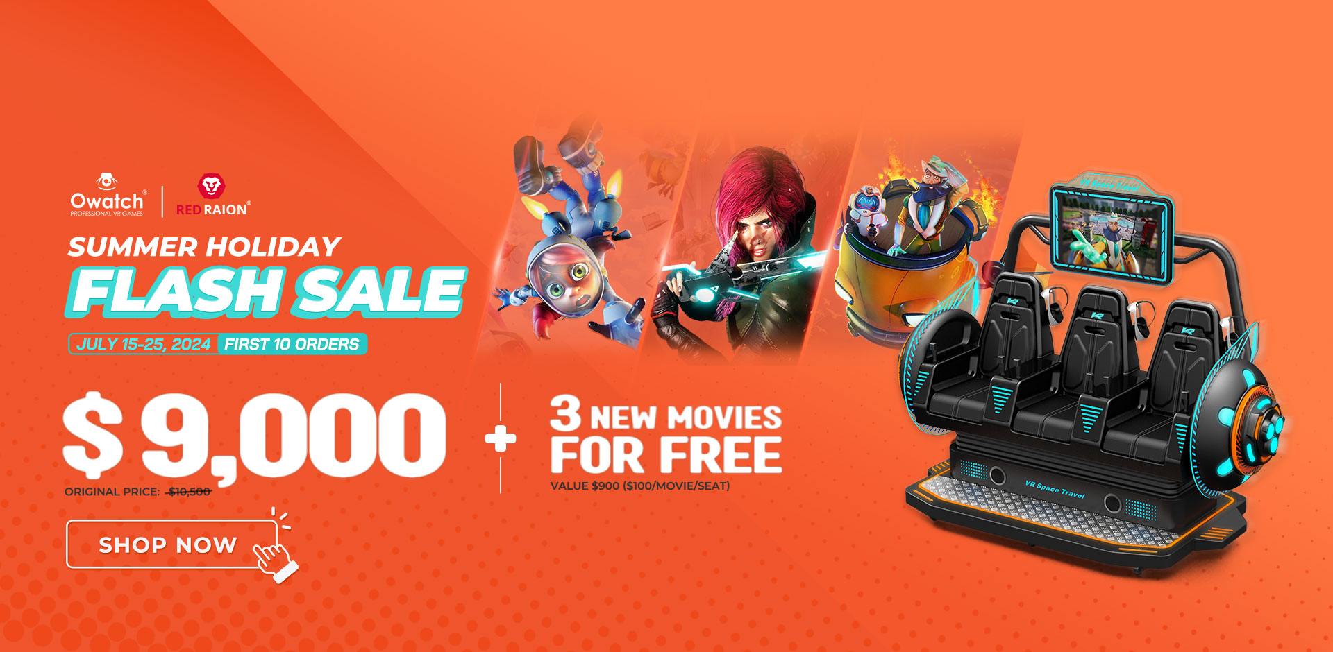 Летняя распродажа! Самый продаваемый в мире бизнес-симулятор виртуальной реальности — VR Space Travel! The VR Space Travel 3-Seat Cinema, который был оценен в 10 500 долларов США за единицу, теперь стоит всего 9 000 долларов США за единицу, атри бесплатные популярные во всем мире IP-игры от итальянской компании RED RAION также отдаются. Доступны только первые 10 заказов, а скидка ограничена 15-25 июля! Для получения дополнительной информации, пожалуйста, свяжитесь с нашими продавцами